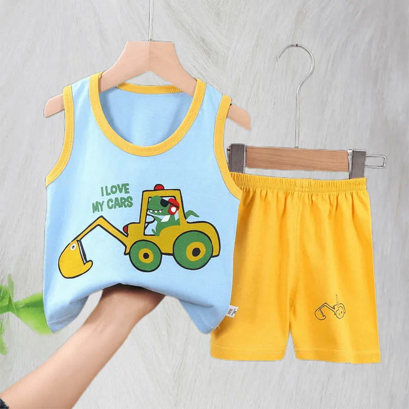Boys Vest Set Summer Cotton New Clothes Children's Sleeveless Cartoon Wool Comfort Set Class A Thin Two-piece Set for 6-9months